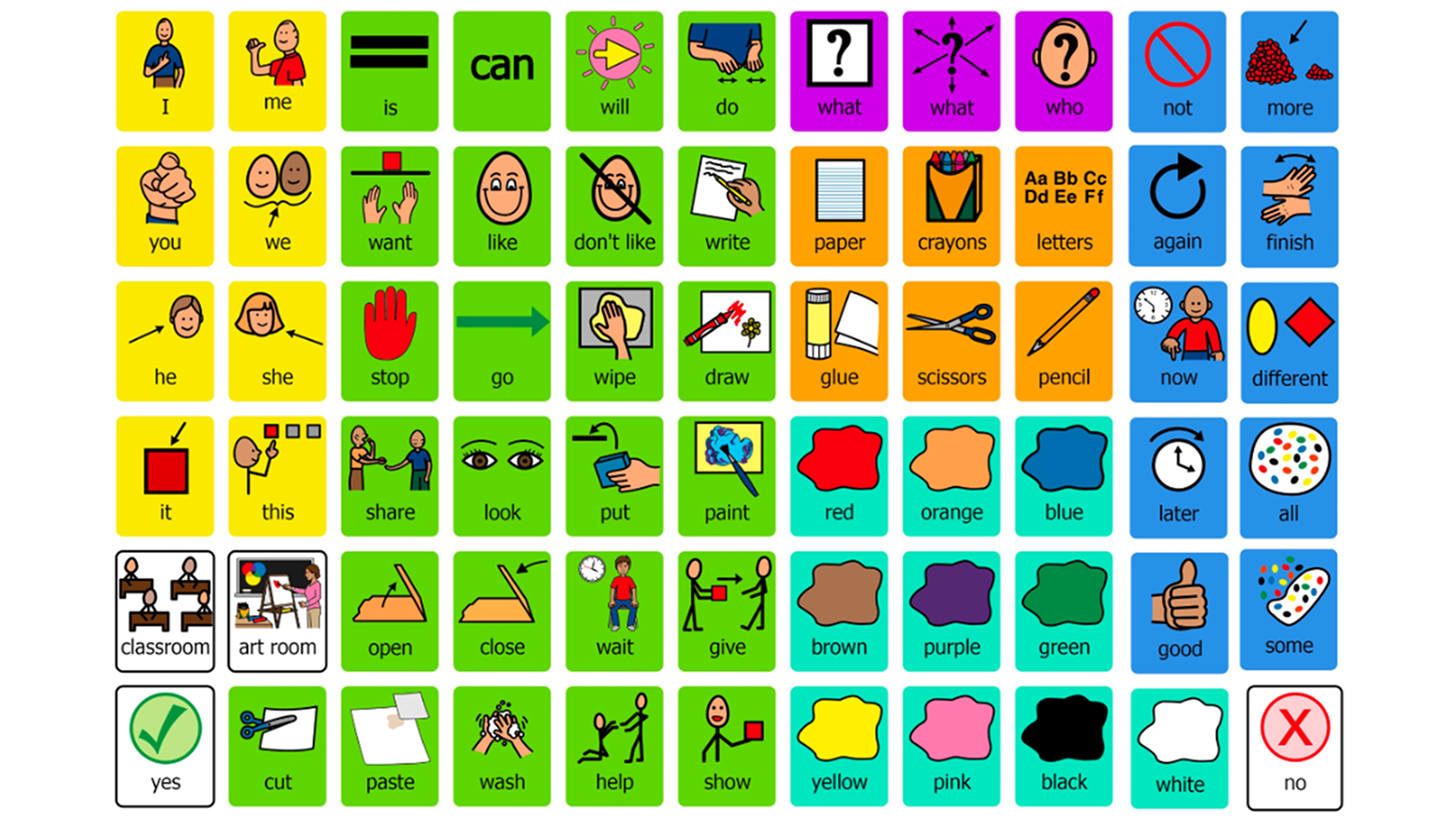 Some persons with autism use an Augmentative and Alternative Communication (AAC) device like this communication board. A communication board uses pictures or symbols to help a person express their needs, choices, and feelings.